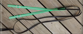 The next FIVE beanTEAM competitor, Individual competitor, or Endomondo competitor that orders from the official GREEN BEAN TACK store (button is on the right sidebar of this site) will qualify for a drawing for a set of black reins with popper and reflective lime green bit ends.  So odds of winning are one in five.  That’s pretty good odds!   The purchase items that qualify are any headstall, halter, lead rope, leathers, or breast collar.  So if you have been wanting to GREEN up your gear in support of the group, this is a great time to order and possible win the reins to go with the piece you’ve chosen.