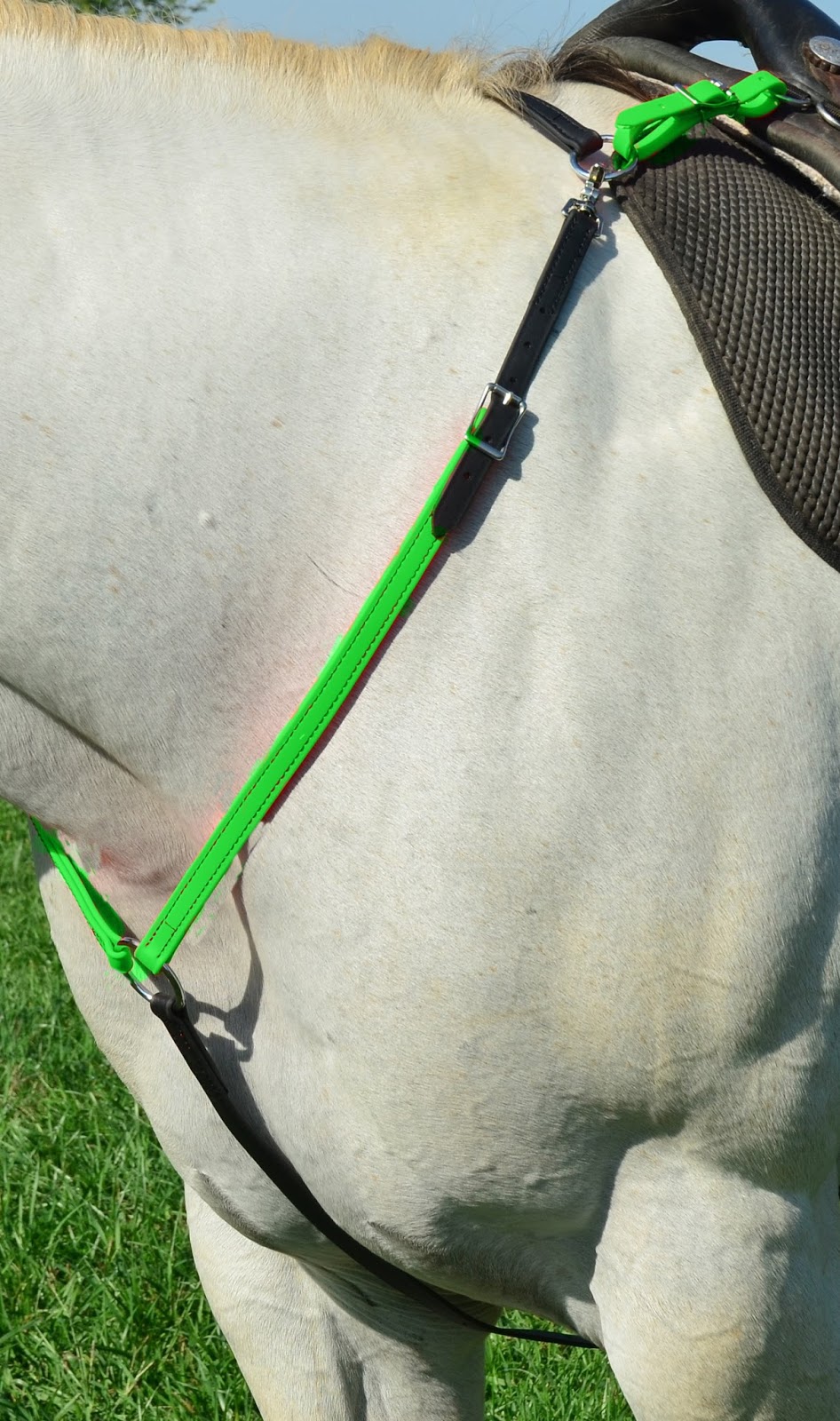 The Green Bean Competition is about more than just being “green.” Our primary goal besides the obvious competition is our social network. Knowing each other, finding each other at ride venues gives our group members an instant base of support, a friendly face to greet, and the ability to give the shout out on trail to encourage each other. Our ridership being spread from West coast to East presents a problem. How do we spot each other at rides and bring our association offline and face to face (where it counts)? The best way we could come up with was to have an official color, which our’s is LIME. One thought led to another and we were able to bring our official rider shirts online as well as a lower cost alternative which Two Horse Tack supplied at zero mark up. Shirts were a start, but there had to be other ways of getting our green on and making our group members stand out as GREEN BEANS…and a unique partnership was formed with Two Horse Tack to develop mix & match tack for our group at large. The official tack is LIME & BLACK, but it allows you to substitute the black with (your color of choice) to individualize your set if you have a personal favorite color. We are pretty darned happy with this arrangement and the support that Two Horse Tack has shown for the sport we love, and for our group in particular.